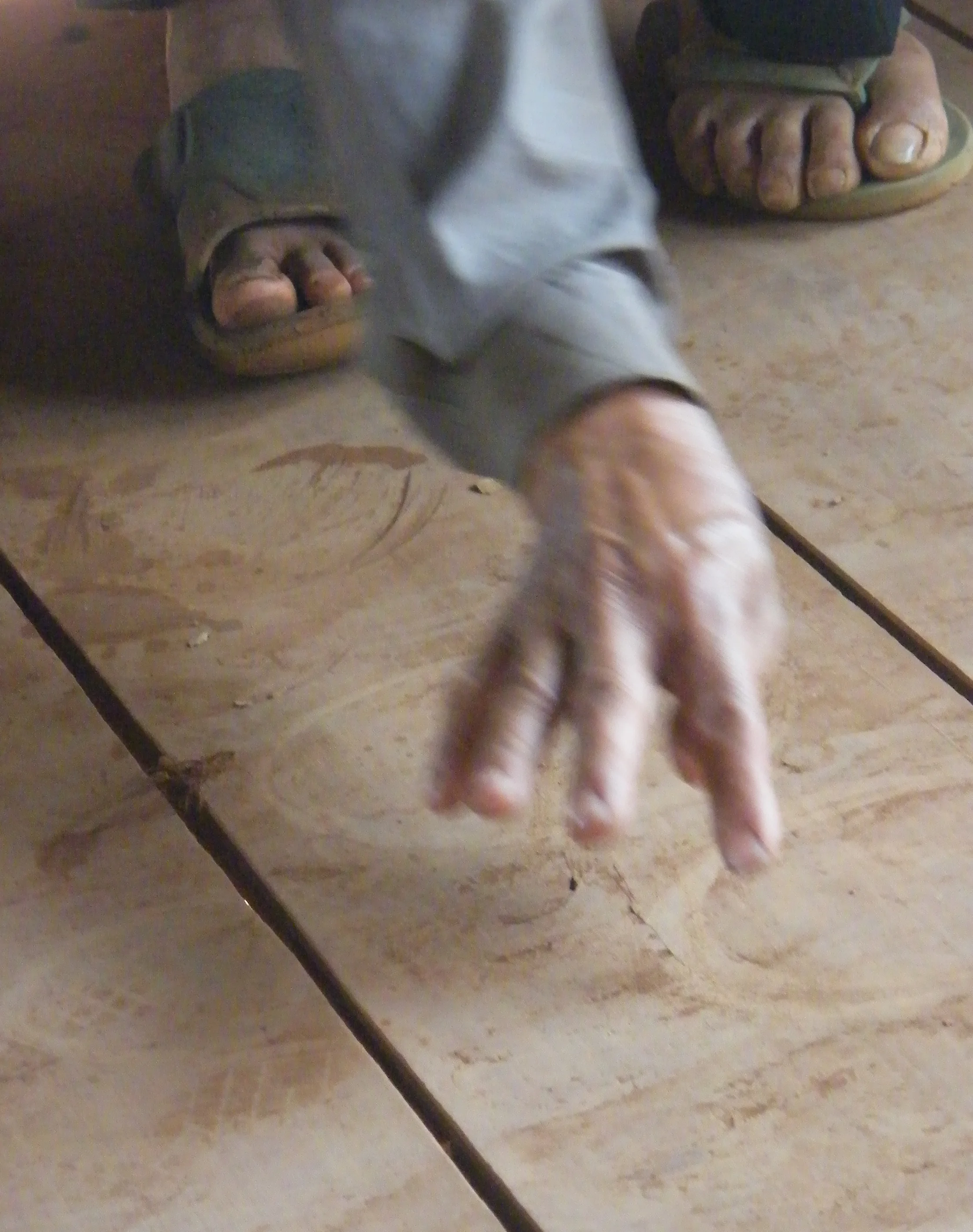 We were on the wooden balcony of a village house during the harvest, talking to 6 men ranging from one in his 20's to 60 year olds. I was simply listening. The older men, rheumy eyed, told me what life was like when they were children, hunting and gathering without a care in the world.(we'll discuss in a later post what the child mortality might have been, whether women's rights were respected and if being able to read does or does not make the world bigger....for now just imagine a pristine Eden). One of the young men cut in to say that he had always been aware of illegal loggers felling trees, taking logs away like pieces of his spirit. The older men averred. A 40 year old told me an NGO tried to help. They got a piece of forest gazetted for conservation (only a fragment but better than nothing) and organised a trip to a city for indigenous men to sign a document. They were not clear what they were signing but were assured it was to ensure the forest was always there. Eventually papers were produced which the indigenous men duly thumb-printed. Then to their horror men from the government came, put fences up around the forest and explained that as a reserve indigenous were no longer allowed to hunt or take food. They would be punished if they even took leaves for traditional medicines. "They put barbed wire between us and our spirit" the men lamented.